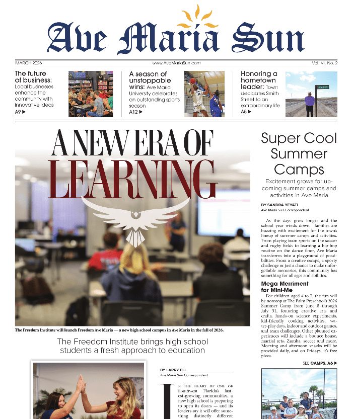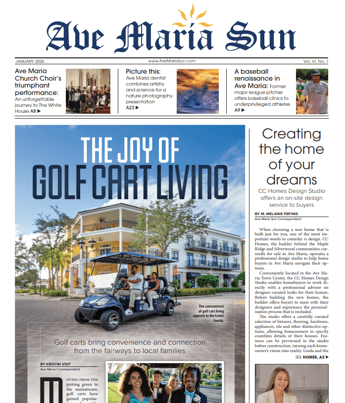 CHECK OUT THE Ave Maria Sun newspaper below or visit (AVE MARIA SUN.COM – FLORIDA WEEKLY).