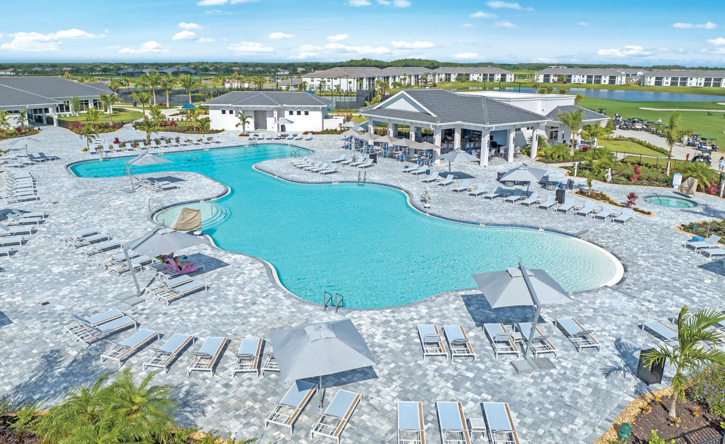The main clubhouse pool, with its resort-style design, is a refreshing focal point for leisure and recreation, providing a perfect escape from the heat. And now, with the newly opened satellite pools, residents have even more options for swimming, lounging, and soaking up the sun.